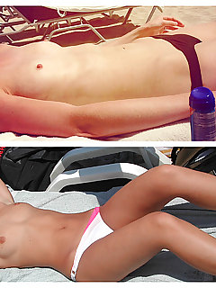 Welcome to our NSFW site with huge collection of beach photo galleries for free. If you like to watch pics with women that shows off their bald pubis, you'll like the stuff we have. Our slogan is "absolutely shaved kitties" and we glad to share our collection of snatches, twats, cameltoes, [insert your favorite word here] with you. Are you ready? let's go!